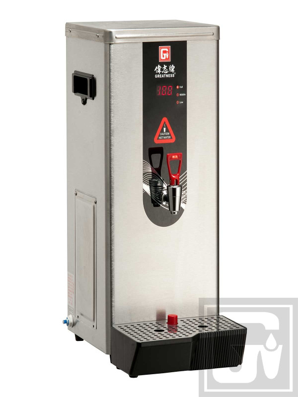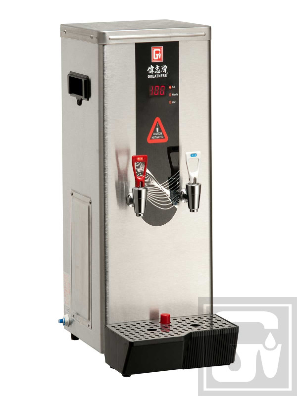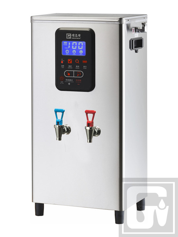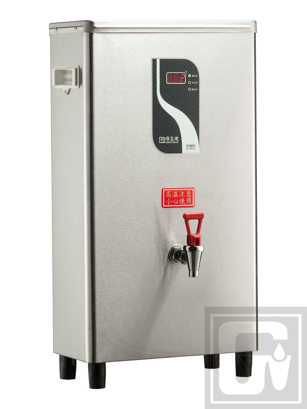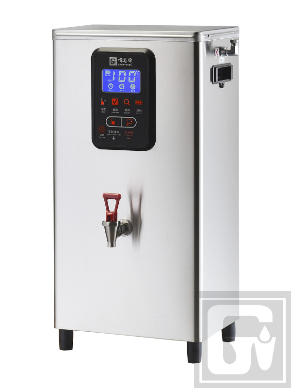 4. 操作設定容易不需專業人員訓練,全自動設計隨時保持滿水位,液晶螢幕顯示溫度及熱水容量,整台採用不銹鋼砂面材質保養容易